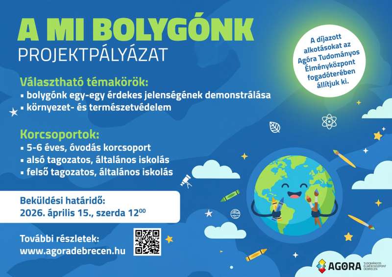 Beküldés helye: Agóra Tudományos Élményközpont, nyitvatartási időben; Postacím: 4015 Debrecen, Pf. 69.