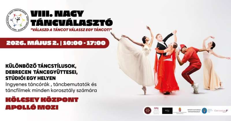 A Tánc Világnapja alkalmából a Táncpedagógusok Országos Szövetsége és a Magyar Táncművészeti Egyetem kezdeményezésére ismét megrendezzük a VIII. Nagy Táncválasztót, amely egy országos programsorozat részeként Debrecenben is várja a tánc szerelmeseit és azokat, akik most szeretnék felfedezni ezt a csodálatos mozgásformát!